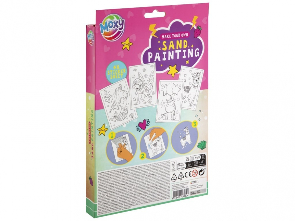 Acest set inovator le ofera copiilor ocazia de a explora tehnica fascinanta a picturii cu nisipuri colorate si pigmenti din pulbere minerala, perfecta pentru a crea opere de arta unice.