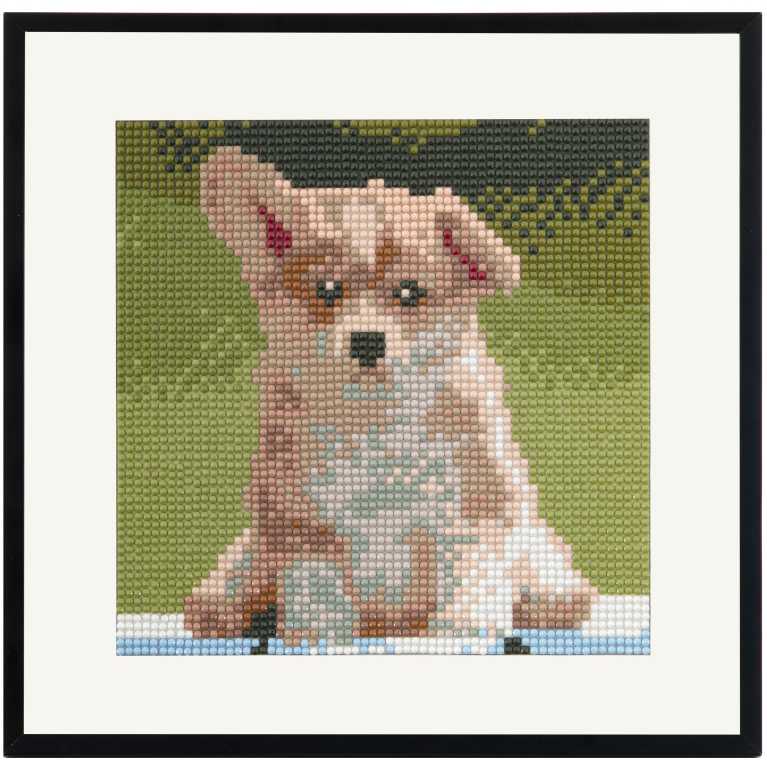 Set creativ Grafix cu diamante rotunde Catelus Diamond Painting 20x20 cm