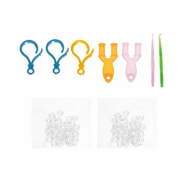Pachetul include elastice loom, crosete, suporturi pentru impletit, elemente decorative si pandantive.