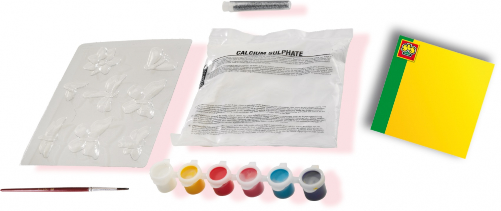 Cu acest kit distractiv si usor de utilizat, incepeti prin a realiza modelele turnate prin rasturnarea amestecului sigur in formele de plastic.