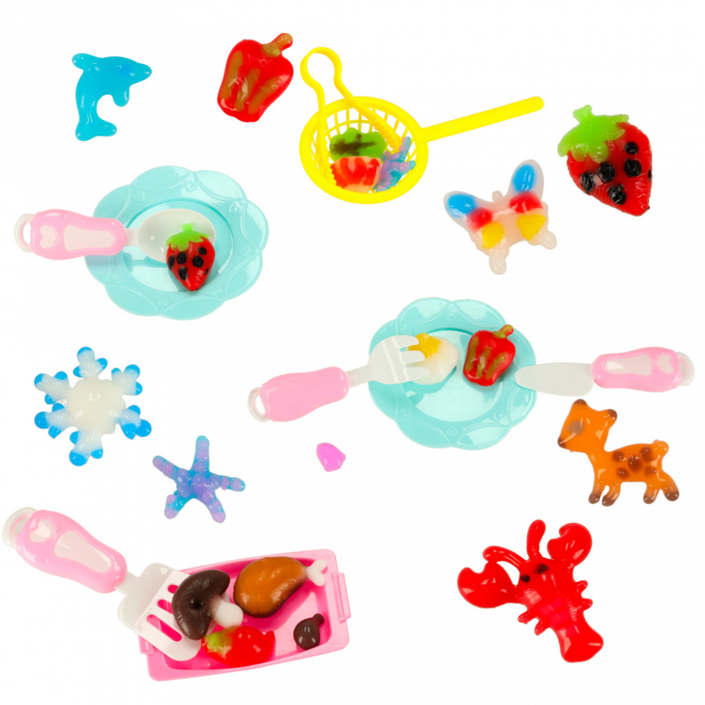 Set creativ pentru copii, Ikonka, cu Aparat de solidificat figurine in matrite 3D, cu efecte sonore si luminoase, 62 accesorii, dimensiune 24 x 18 x 18 cm, Magic Kitchen Blue