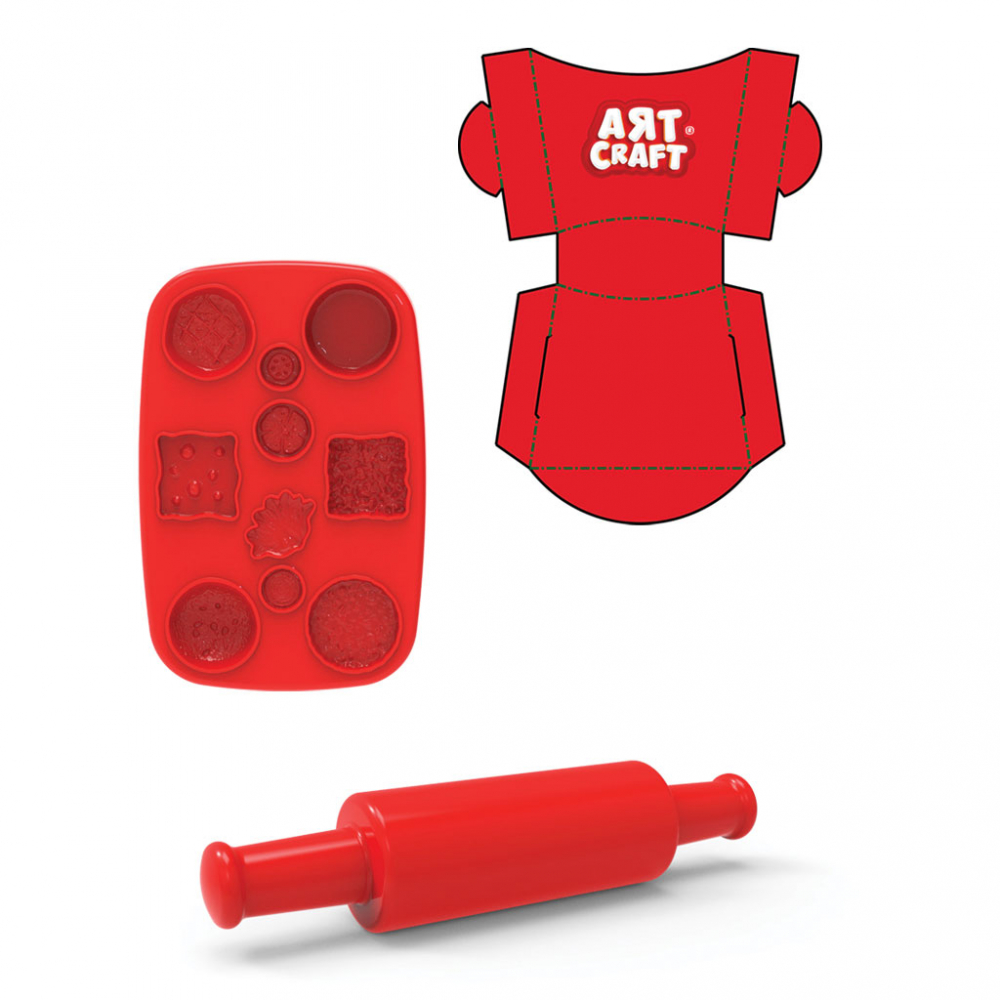 * Set Creativ, Plastilina Art Craft, Hamburger, Include 3 Batoane cu Pasta Modelatoare 150g, 1 Matrite pentru Modelat, Sucitor, Nu se Usuca, 3 ani+, Multicolor