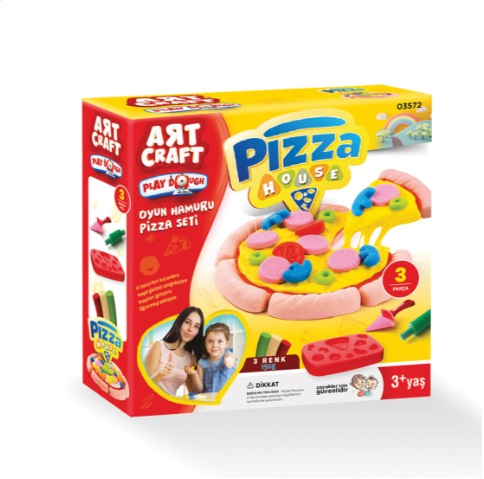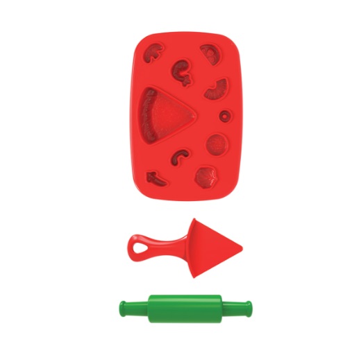 * Gateste-ti propria pizza, cu cele 3 tipuri diferite de plastilina, fiecare intr-o culoare vesela si distincta!