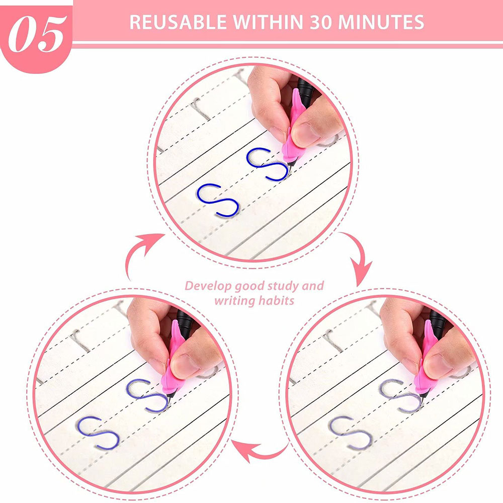 Functia reutilizabila acestui set de rechizite scolare face ca cei mici sa utilizeze pentru o lunga perioada de timp aceste caiete, deoarece scrierea de mana dispare automat dupa uscare, ca atare copiii dumneavoastra le pot folosi pentru practicare repetata!