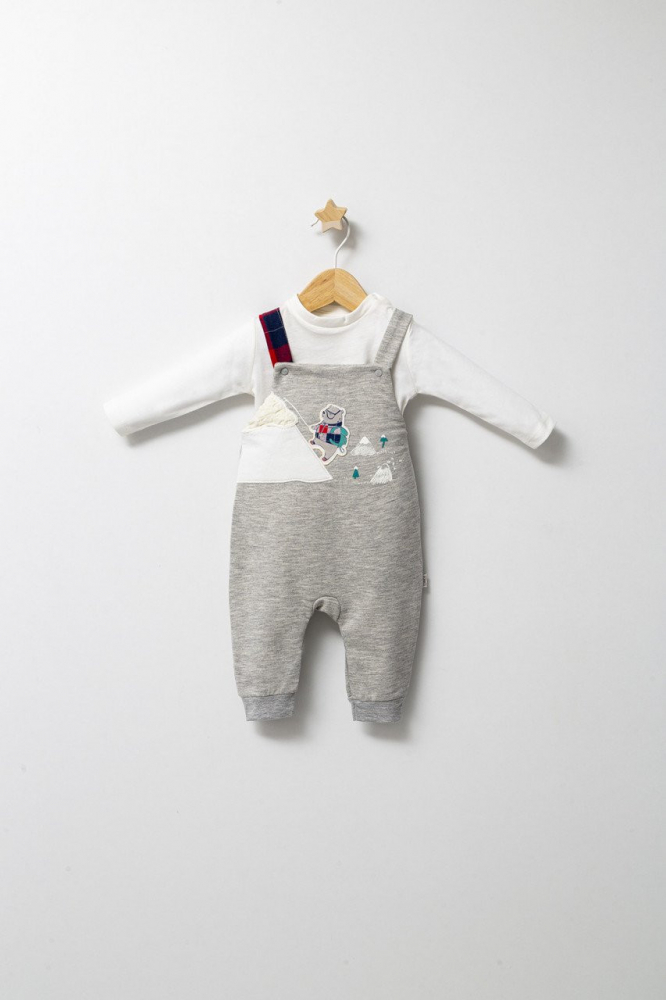 Set cu salopeta si bluzita pentru bebelusi Mountain Tongs baby Gri 6-9 luni