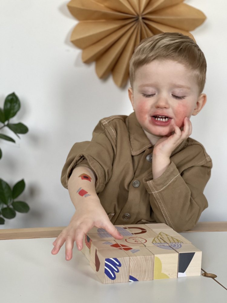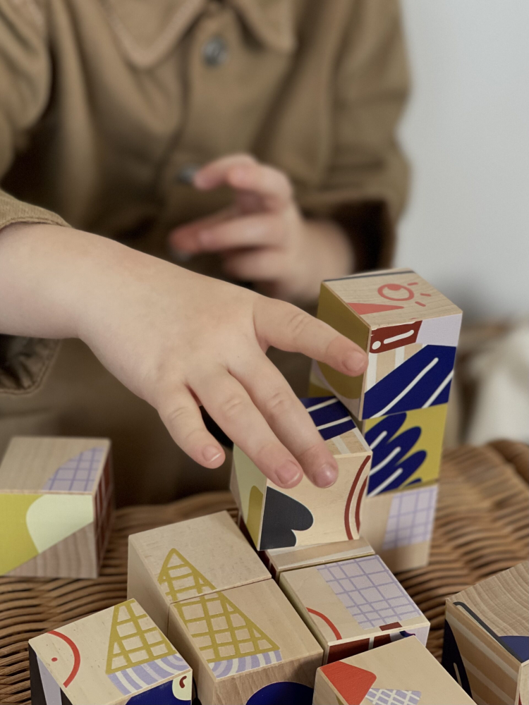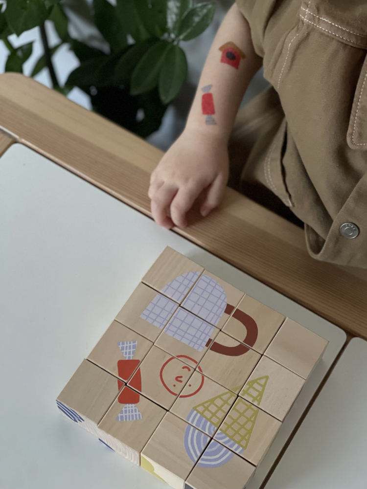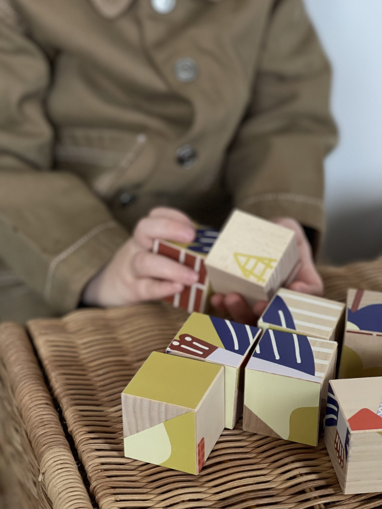Set Cuburi puzzle de poveste Minmimcph din lemn 16 piese