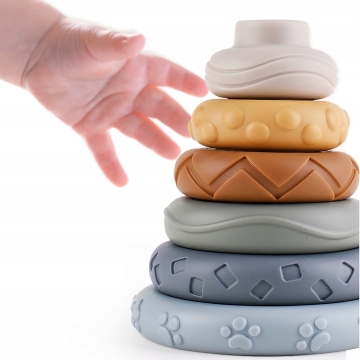 Prietenul perfect pentru dentitie: gingiile sensibile ale bebelusului gasesc alinare in textura moale si placuta a blocurilor.