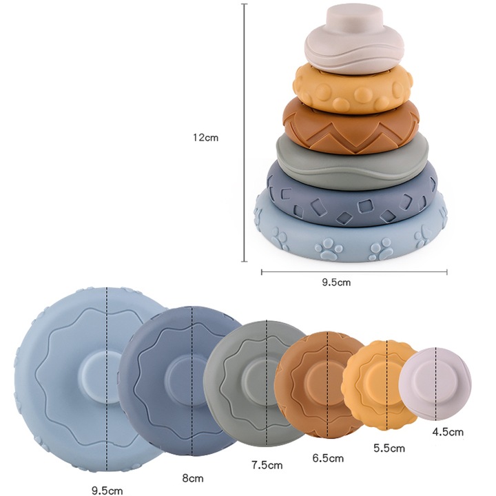 - 6 discuri colorate, perfecte pentru stivuire;