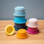 aceste cupe de stivuit sunt excelente pentru activitati senzoriale cu nisip, fie pe plaja, fie in gradina dvs. si nu trebuie sa va faceti griji cu privire la mizerie, deoarece sunt foarte usor de curatat