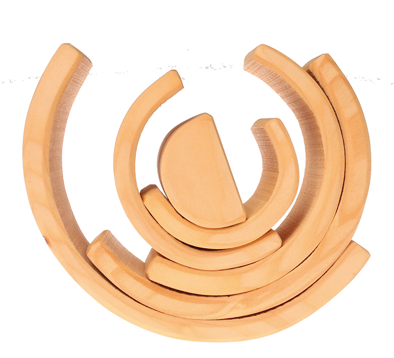 Jucarie Waldorf creativa din 6 piese de lemn avand forma de semicerc.
