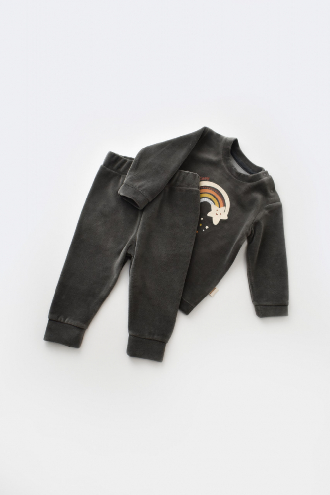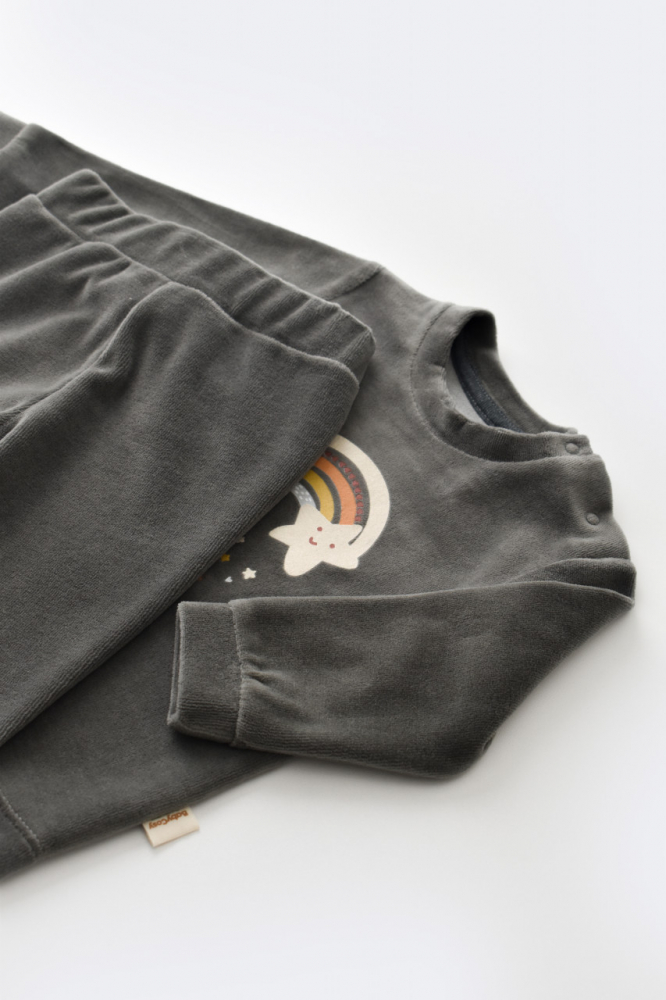 Set Curcubeu bluzita si pantaloni BabyCosy Antracit marime 12-18 luni