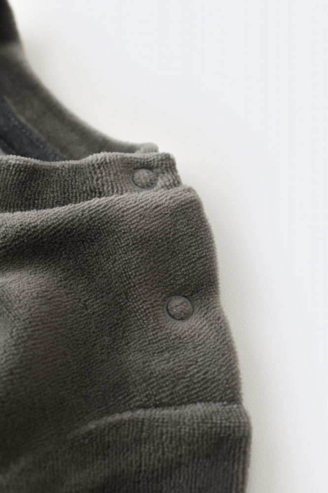 - Este realizat din 80%bumbac organic si 20% poliester, delicat cu pielea gingasa a a bebelusului. Printurile sunt cu vopseluri pe baza de apa si toate produsele sunt in concordanta cu standardele GOTS.
