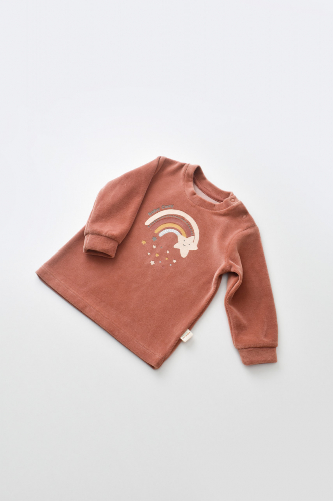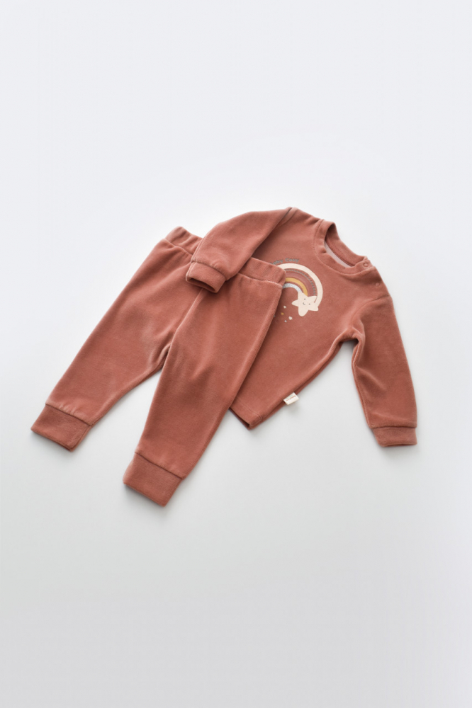 Set Curcubeu bluzita si pantaloni BabyCosy Caramiziu marime 6-9 luni
