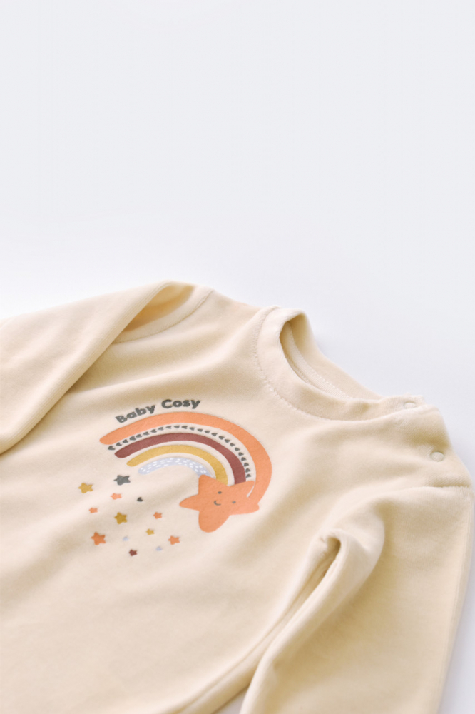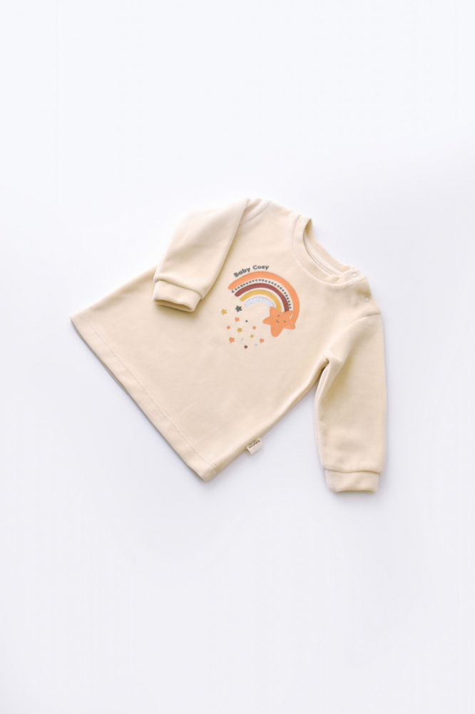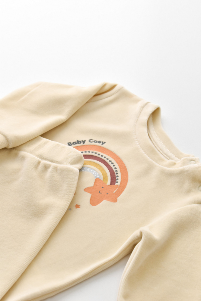 Set Curcubeu bluzita si pantaloni BabyCosy Crem marime 12-18 luni