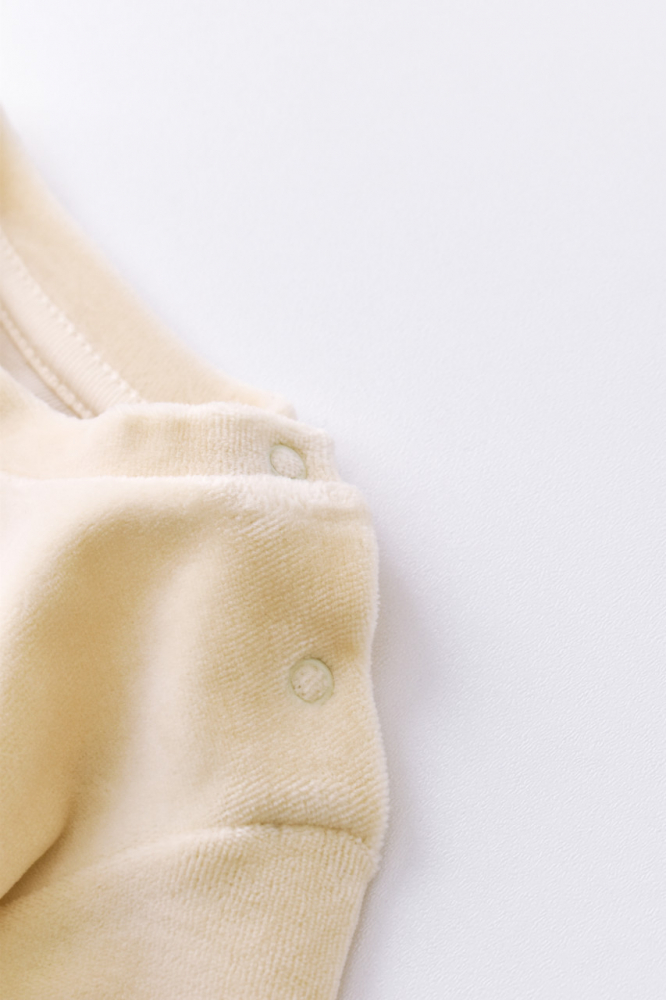 - Este realizat din 80%bumbac organic si 20% poliester, delicat cu pielea gingasa a a bebelusului. Printurile sunt cu vopseluri pe baza de apa si toate produsele sunt in concordanta cu standardele GOTS.