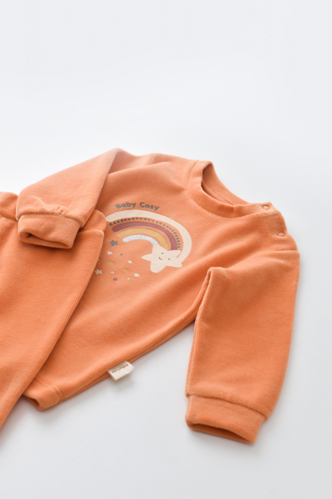 Set Curcubeu bluzita si pantaloni BabyCosy Portocaliu marime 9-12 luni