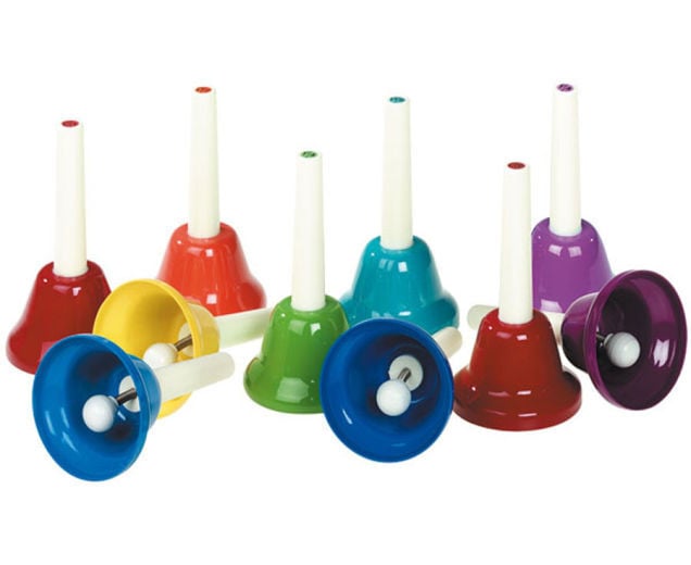 Fiecare clopoțel este acordat cu precizie pentru a produce sunete clare, iar mânerele practice permit copiilor să le țină cu ușurință.