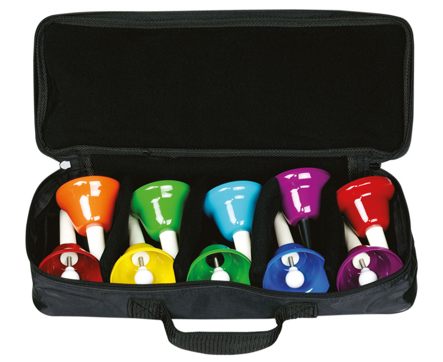 Un set ideal pentru dezvoltarea simțului ritmic și muzical al copiilor, cu 10 clopoței acordați precis, fiecare cu un sunet distinct și o culoare proprie.