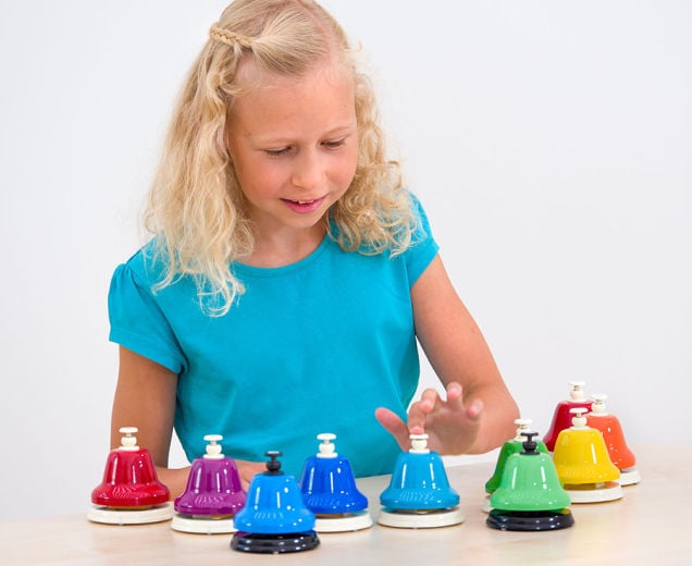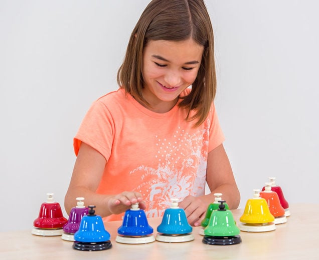 • Compatibilitate cu Boomwhackers – Culorile clopoțelelor sunt aceleași cu cele ale Boomwhackers, permițând crearea de muzică împreună.