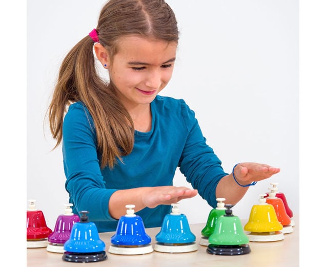 Setul conține suficiente clopoțele pentru ca mai mulți copii să poată cânta simultan, stimulând colaborarea și învățarea prin joacă.