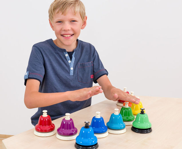 • Simțul ritmului și al armoniei – Copiii vor învăța să cânte la clopoței acordați și să recunoască sunetele.