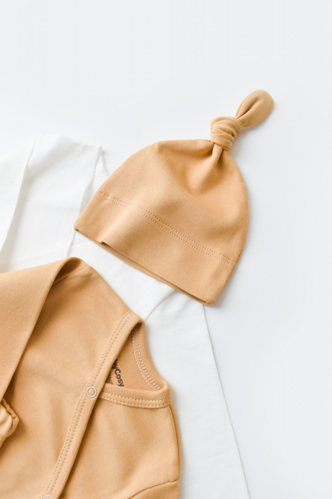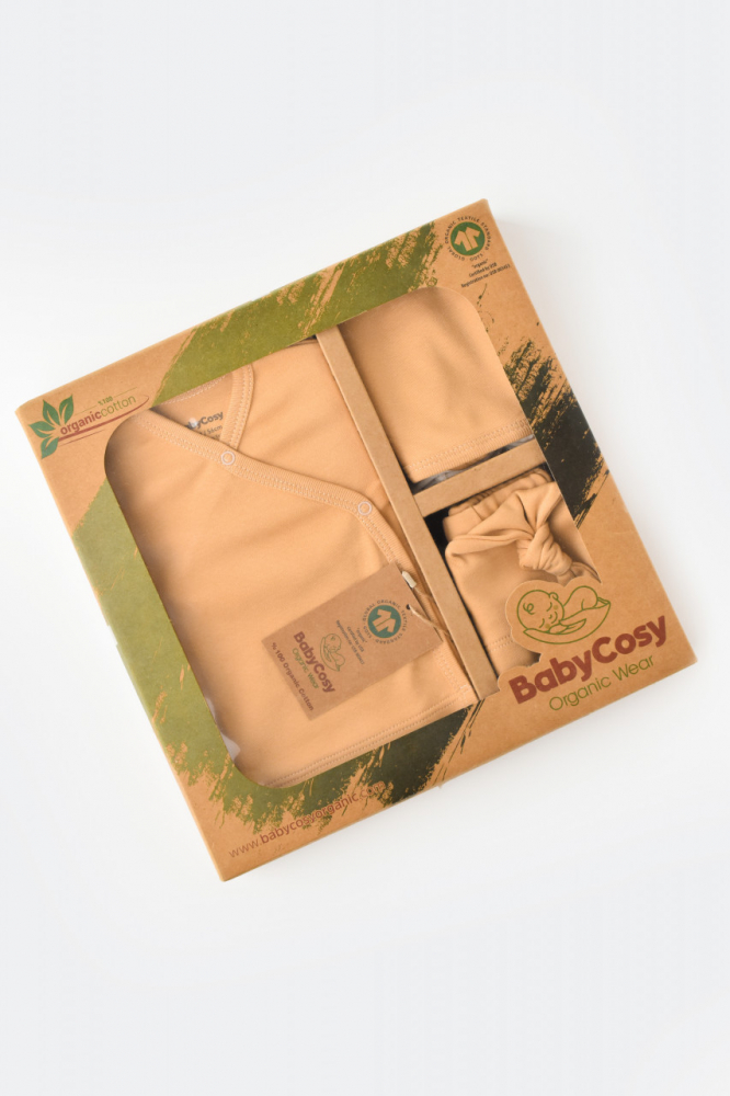 Set de 10 piese pentru nou nascut 100% bumbac organic Baby Cosy Mustar
