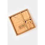 Acest set contine toate piesele necesare pentru primele luni de viata sau, de ce nu, pentru scoaterea din spital a nou-nascutului, fiind asamblat intr-o cutie eleganta de carton ce poate fi oferita ca si cadou: