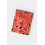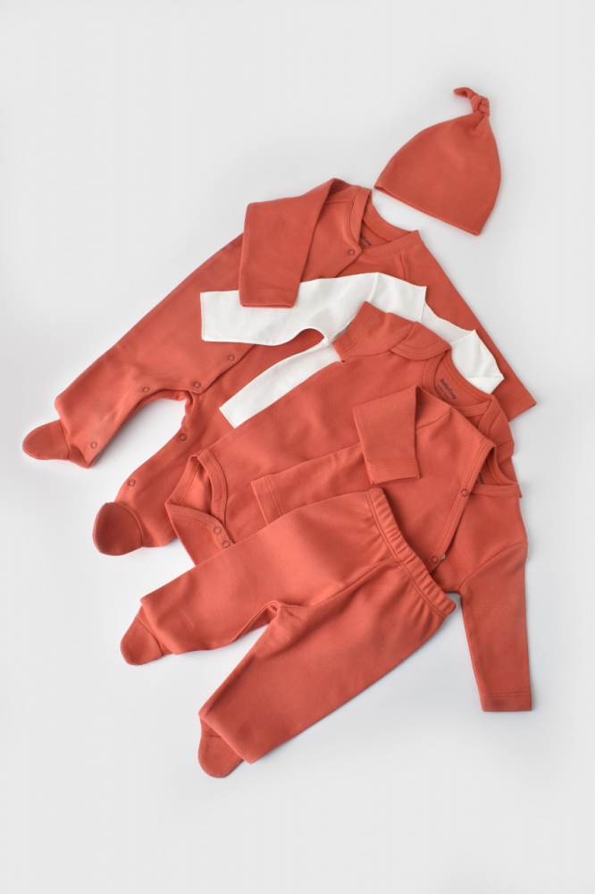 Acest set contine toate piesele necesare pentru primele luni de viata sau, de ce nu, pentru scoaterea din spital a nou-nascutului, fiind asamblat intr-o cutie eleganta de carton ce poate fi oferita ca si cadou: