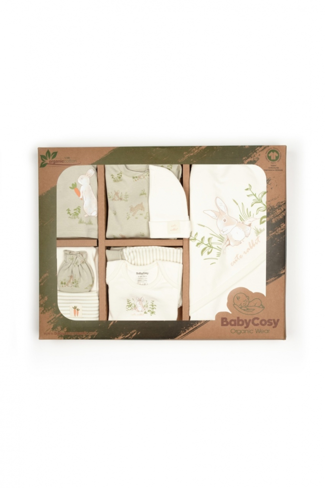 Set de 10 piese pentru nou nascut, 100% bumbac organic, Rabbit, BabyCosy
