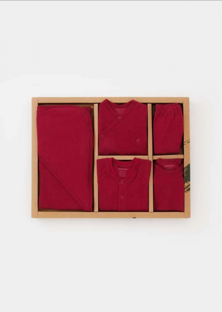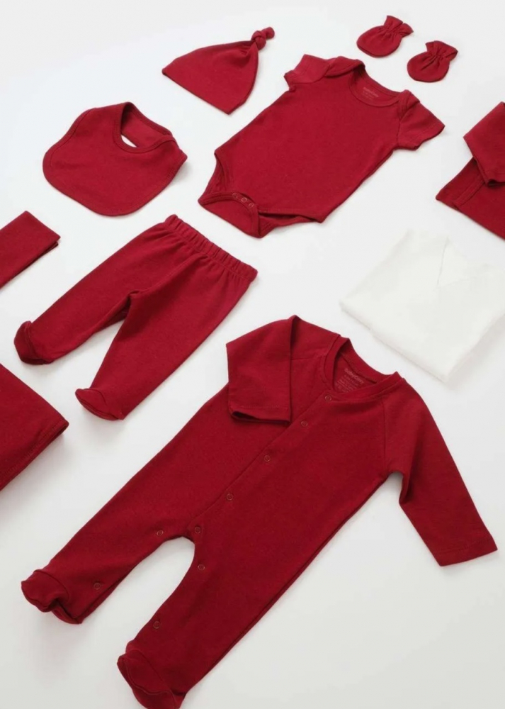 Set de 10 piese pentru nou nascut 100% bumbac organic Rosu, BabyCosy