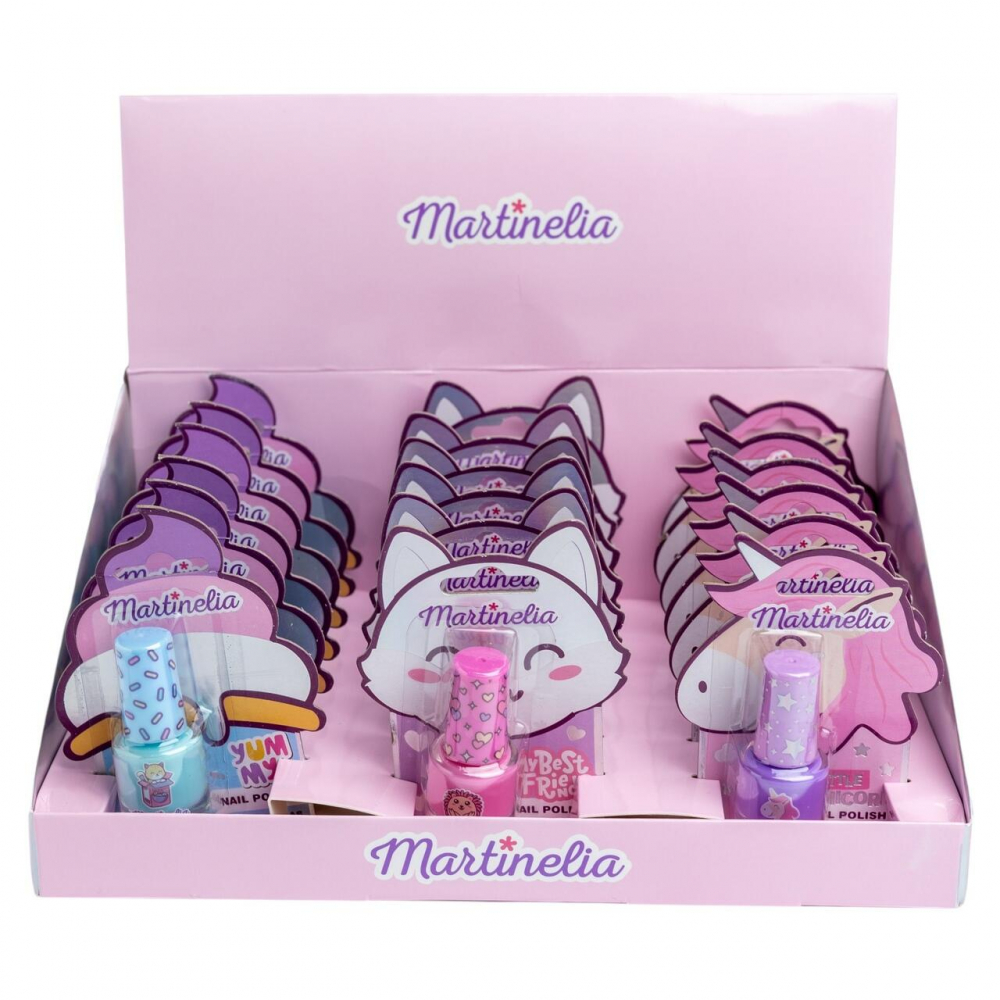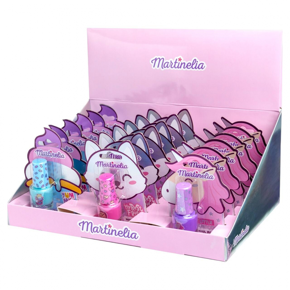 Produsul Martinelia World cu codul 35075 este un set de ojă solubilă pentru unghii, destinat copiilor. Fiecare sticluță are un volum de 4 ml, iar setul conține 18 bucăți, împărțite în trei sortimente atractive: