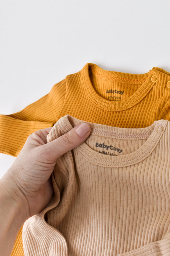 Set de 2 body-uri cu maneca lunga din bumbac organic si modal Mustar/Somon 0-3 Luni