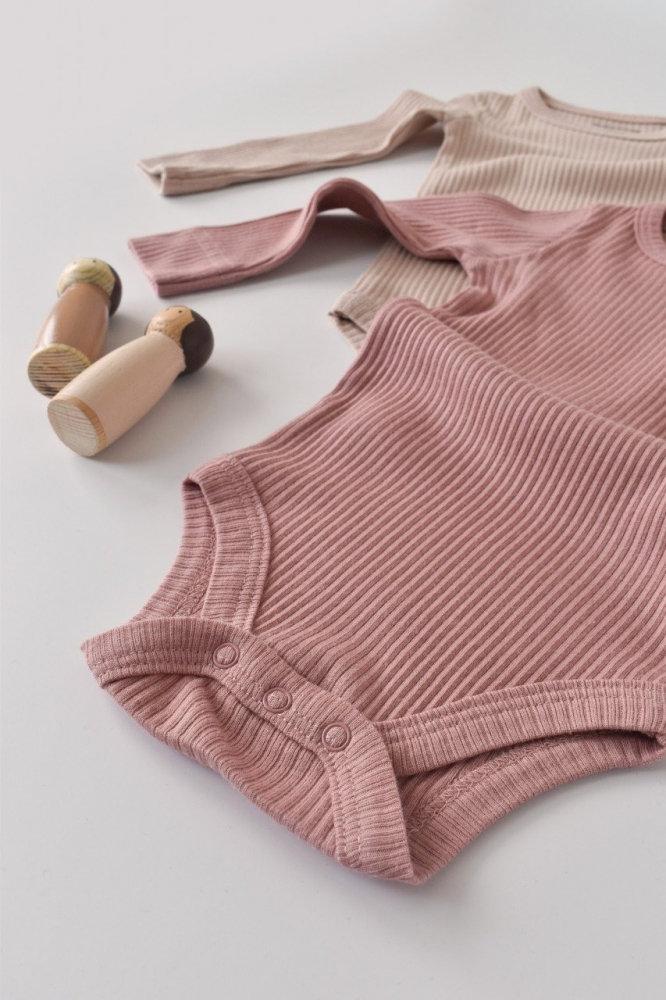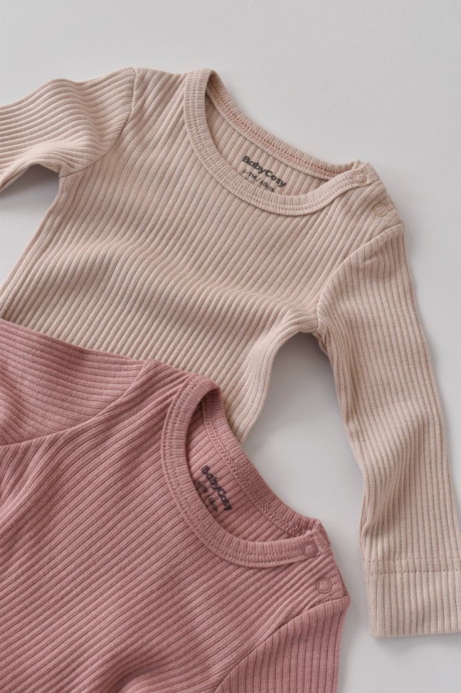 Set de 2 body-uri cu maneca lunga din bumbac organic si modal Roz/Blush marime 6-9 luni