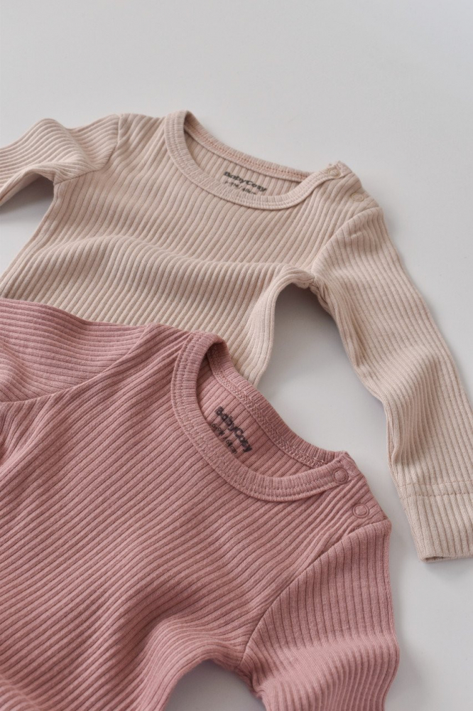 Set de 2 body-uri cu maneca lunga din bumbac organic si modal Roz/Blush marime 9-12 luni