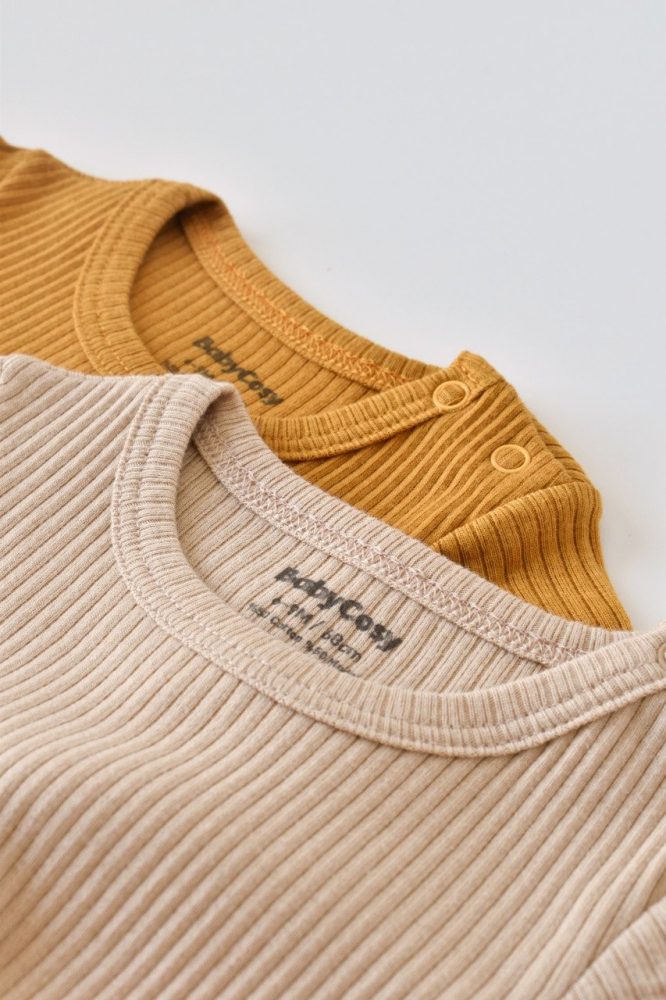 Set de 2 body-uri cu maneca scurta din bumbac organic si modal Baby Cosy Mustar-Somon marime 3-6 luni