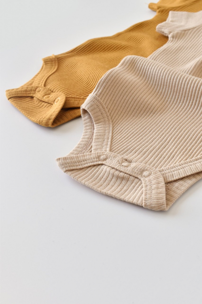 Set de 2 body-uri cu maneca scurta din bumbac organic si modal Baby Cosy Mustar-Somon marime 6-9 luni