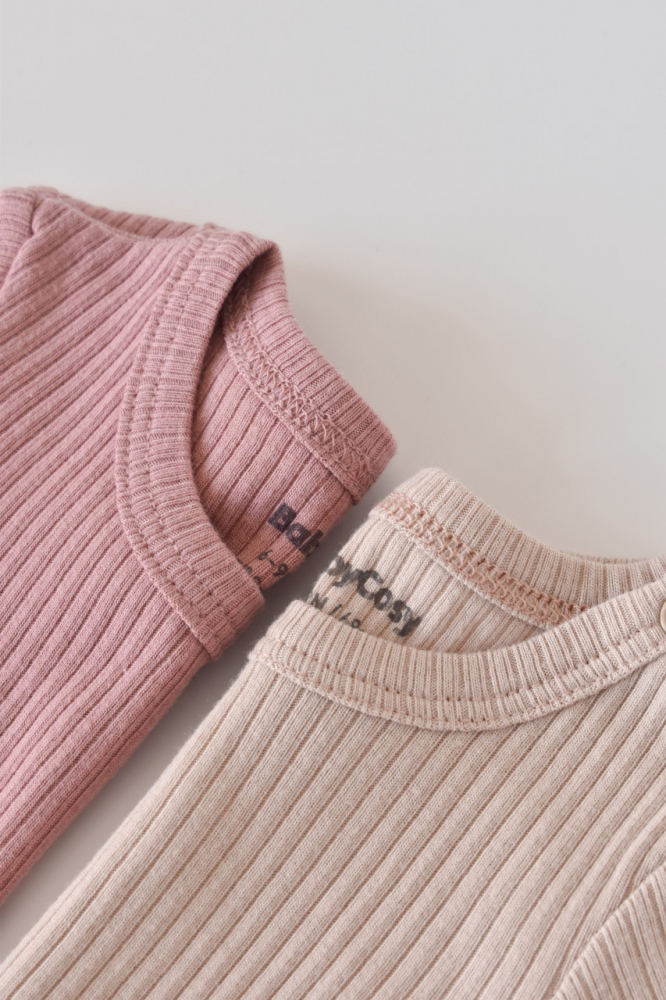 Set de 2 body-uri cu maneca scurta din bumbac organic si modal Baby Cosy Roz-Blush marime 9-12 luni