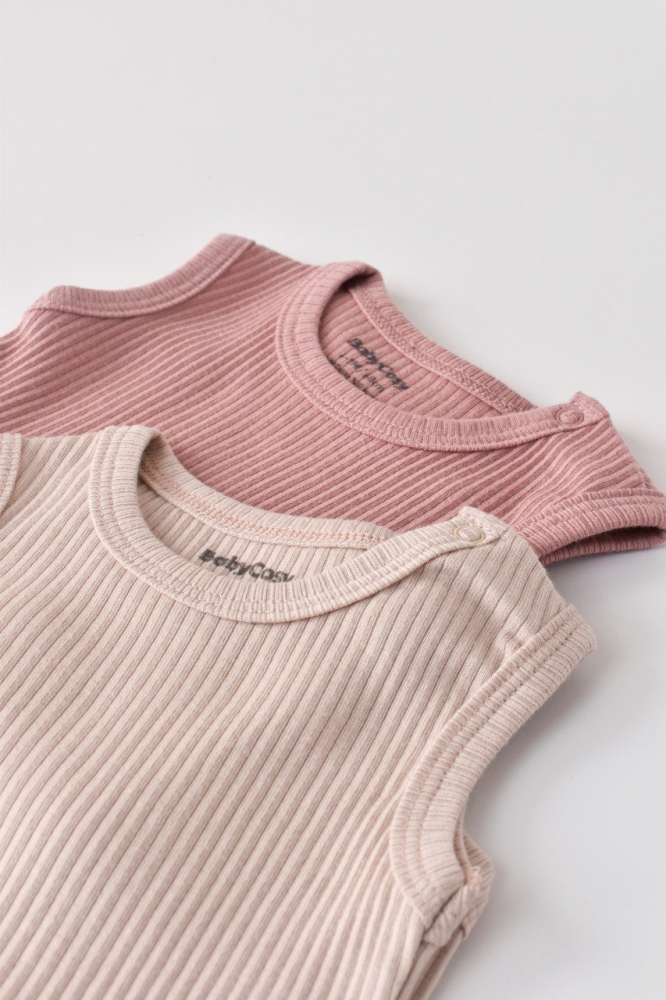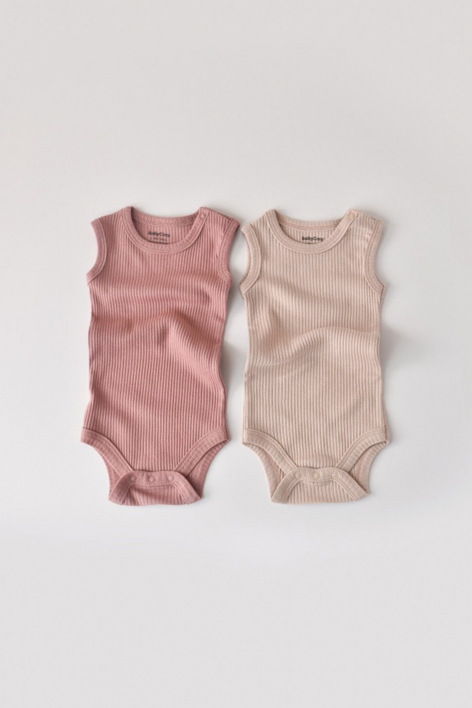 Set de 2 body-uri fara maneci din bumbac organic Roz/Blush marime 9-12 luni