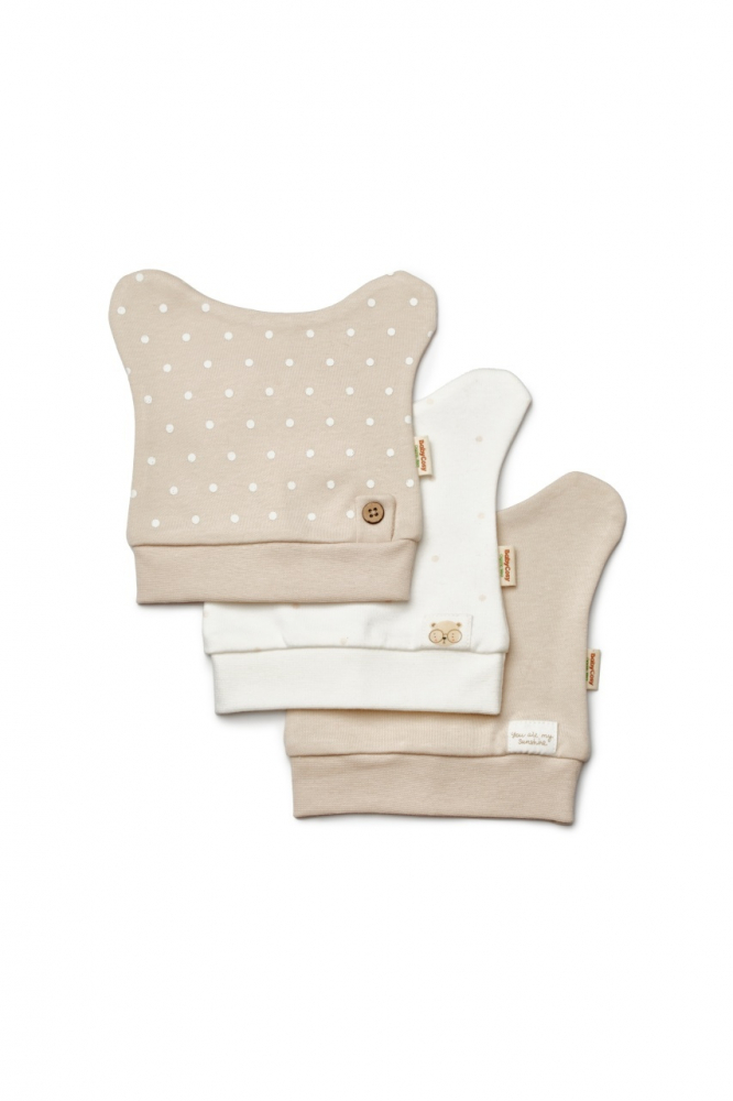 Set de 3 caciulite pentru nou nascut, 100% bumbac organic, TeddyBear, BabyCosy