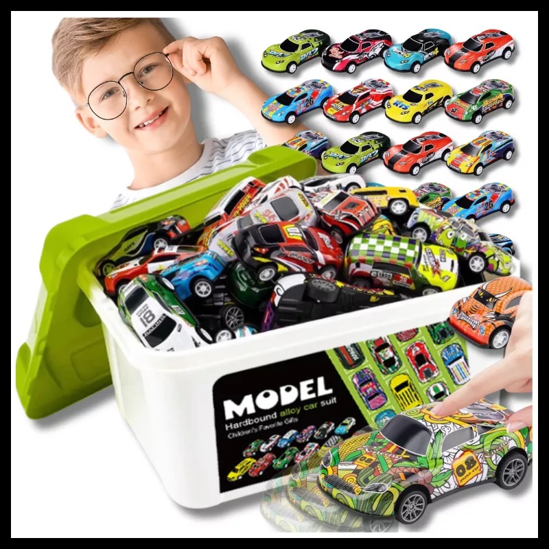 - Setul include pana la 35 de masinute metalie de jucarie, in diferite culori si modele, care vor incanta cu siguranta fiecare copil.