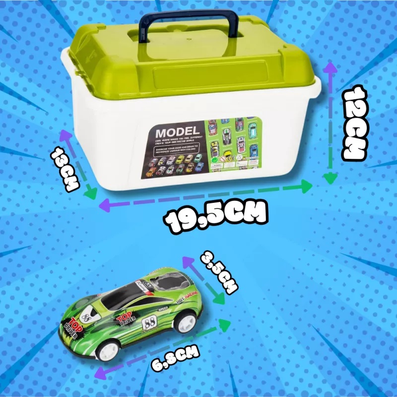 - Cutie practica: masinile de jucarie sunt ambalate cu grija intr-o cutie estetica care le face usor de depozitat si transportat. Astfel, iti poti lua masinile preferate peste tot cu tine.
