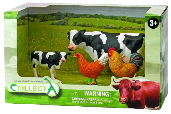 - Setul contine: 1 vaca, 1 vitel, 1 gaina, 1 cocos