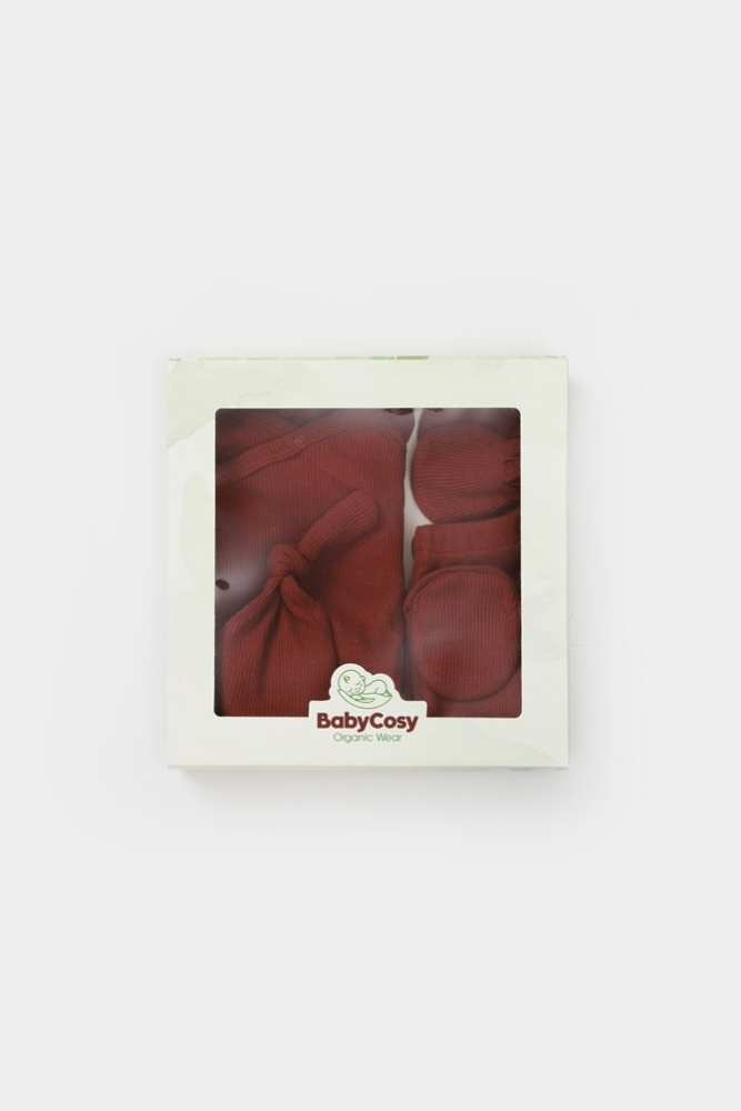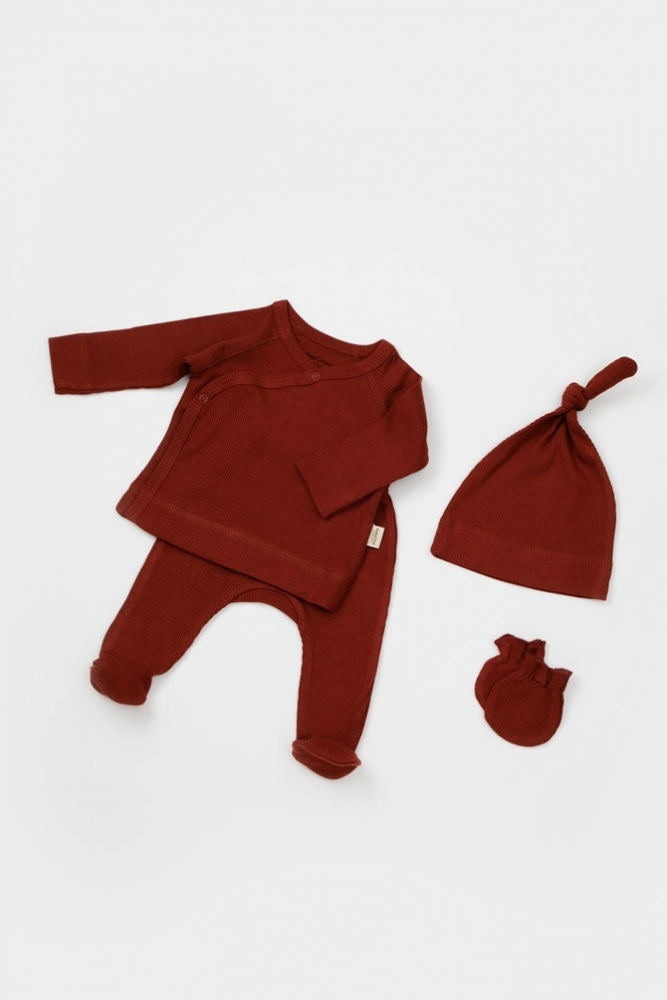Set de 4 piese pentru nou nascut 100% bumbac organic BabyCosy caramiziu