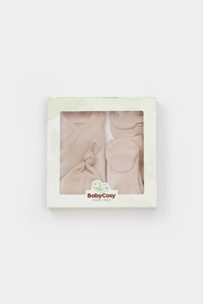 Set de 4 piese pentru nou nascut 100% bumbac organic BabyCosy mink