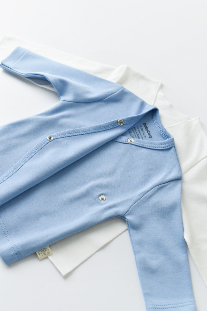 - Bluzita cu maneca lunga, cu inchidere pe lateral cu capse ce nu contin nichel si foarte usor pentru a fi purtat de un bebe nou nascut