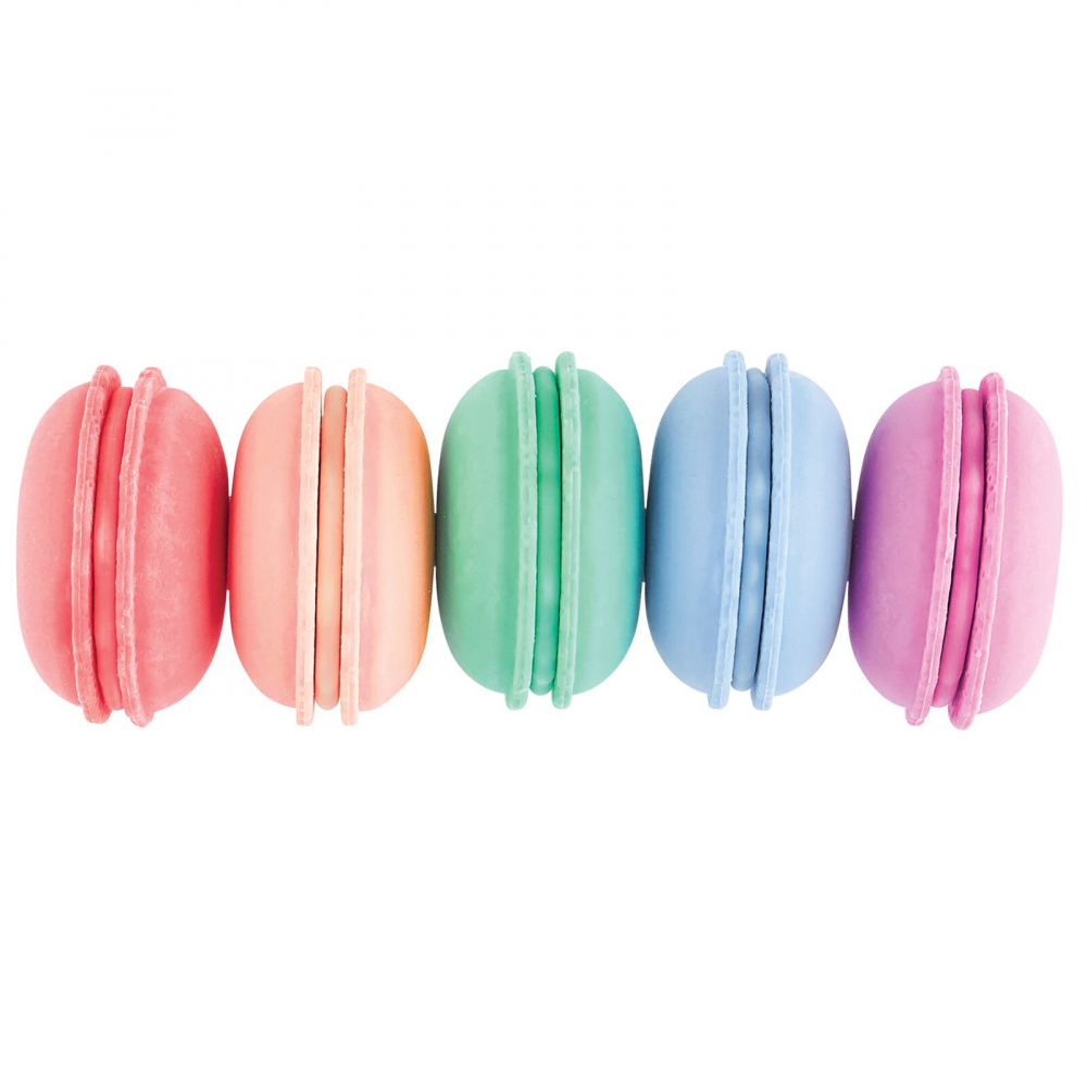 Arată-ți dragostea pentru dulceața vieții cu radierele parfumate Le Macaron Pâtisserie. Asta înseamnă în franceză "gumă de șters macaron". Acest produs de patiserie franceză cu aspect delicios este destinat ștergerii greșelilor de creion, iar acestea miros a vanilie dulce. Desfaceți aceste gume de șters puzzle pentru a amesteca culorile și a le asorta pentru tot felul de creații în culori pastelate. Fiecare gumă de șters macarons are un diametru de aproximativ 1,75 inci și vine într-un set de 5.