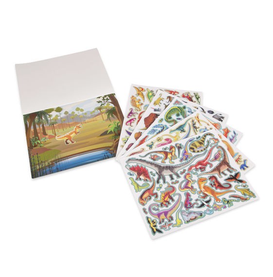 Pentru a crea scene minunate din lumea preistorica (Oceanul Preistoric, Triassic, Jurassic, Cretaceous si Ice Age) acest set vine cu cinci planse diferite pe care cei mici pot lipi in voie autocolantele potrivite.