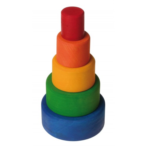 Set de 5 boluri din lemn de anin pentru bebelusi, colorate in nuante de albastru, verde, galben, portocaliu si rosu.