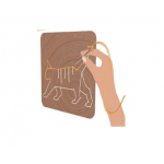 • Conținut: 4 discuri din lemn (modele: pasăre, elefant, iepuraș, pisică), 4 bobine de ață colorată, 2 ace sigure pentru copii