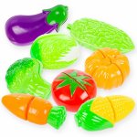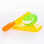 * Legumele sunt conectate cu banda velcro, in timp ce copilul taie legumele, banda velcro rezista si scoate un sunet ca atunci cand legumele sunt taiate in mod real.